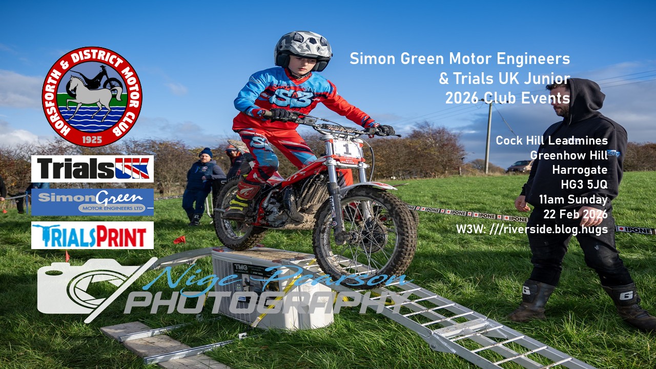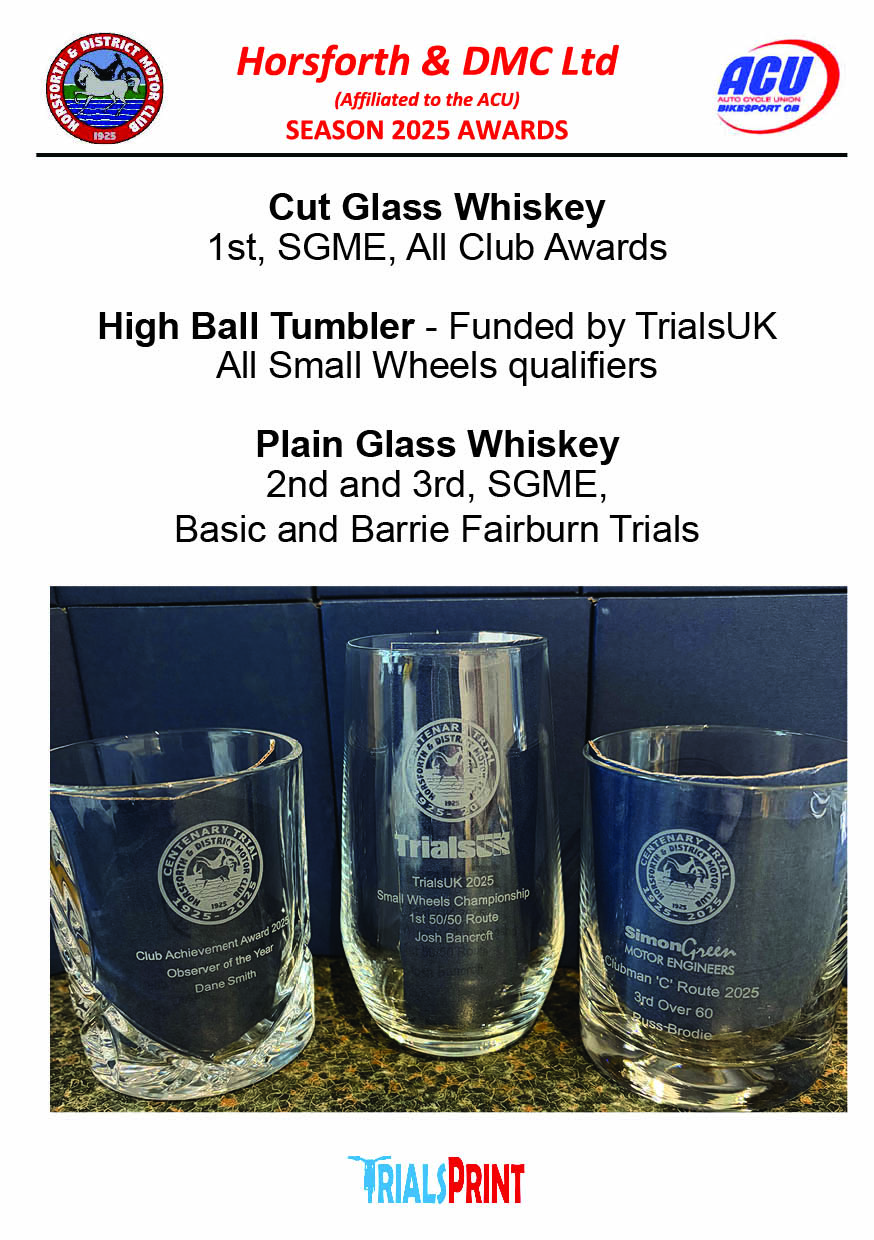 Fortunately for the trials community, the sport has to date enjoyed a ‘light touch’ attitude largely due to the absence of speed as a component in competition so serious accidents are thankfully rare. Nonetheless rules do apply and the Horsforth Club (and hopefully all clubs) will be doing our best to comply with our obligations and ensure the safety of riders, officials and the public. You might therefore experience some changes to signage, procedures etc and we respectfully suggest that everyone who attends a trial abides by the rules, signage, requests or instructions from officials and listens to the pre event briefings.